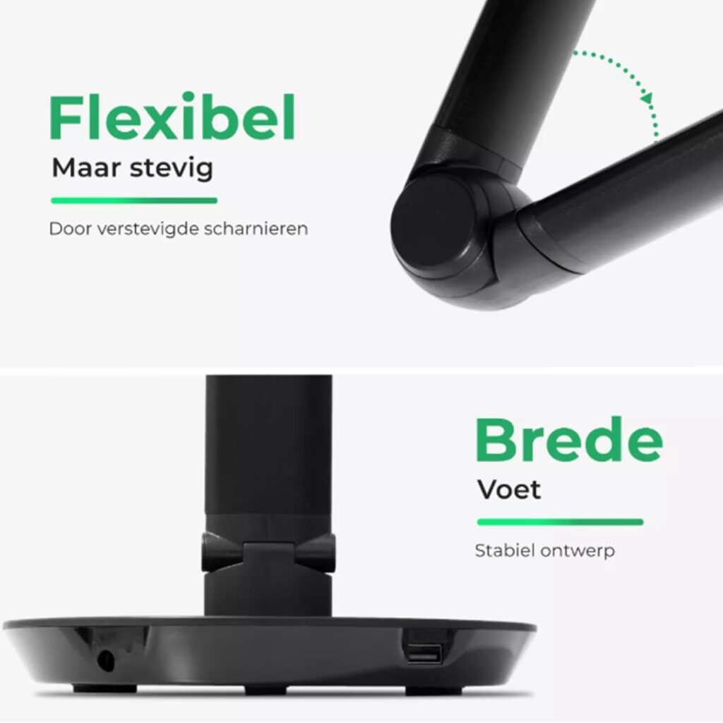 - Flexibele, volledig verstelbare arm